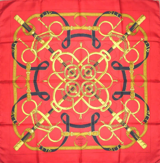 I'm really exciting finding this vintage Hermés scarf on my last trip. I wore it first time today and I love everything about it - the bright red colour and the blue and gold pattern is just perfect. The name of this specific scarf is Eperon d'or and it was designed in 1974 by H 'Origny. This specific style has been extremely popular and the scarf has been reissued six times; in 1989/90, 1990, 1997, 2003, 2003/04 and 2010/11.